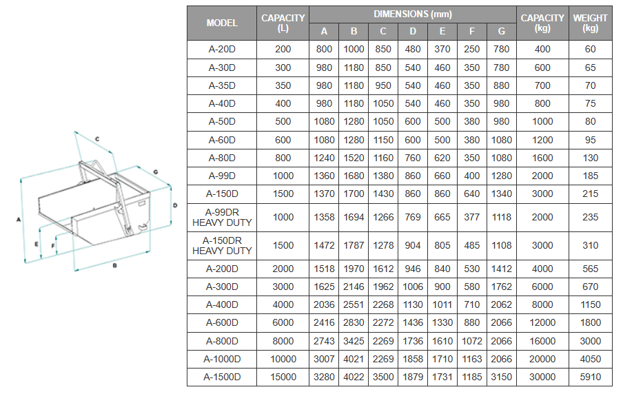 Našim kupcima nudimo ovu paletu korpi za rasuti teret sa samoispuštanjem, koji se koriste za općenito uklanjanje blata, ruševina i otpada. Ovi spremnici visoke kvalitete jamče jednostavan i siguran rad jer se automatski prazne bez pomoći radnika. Ovaj poseban i moderan sustav otpuštanja eliminira rizik da operater uđe u opasnu zonu gdje radi kanta. Niska visina utovara i padajuća ruka također čine proces punjenja vrlo lakim. Ovaj proizvod se proizvodi u velikom rasponu veličina do 10.000 l.